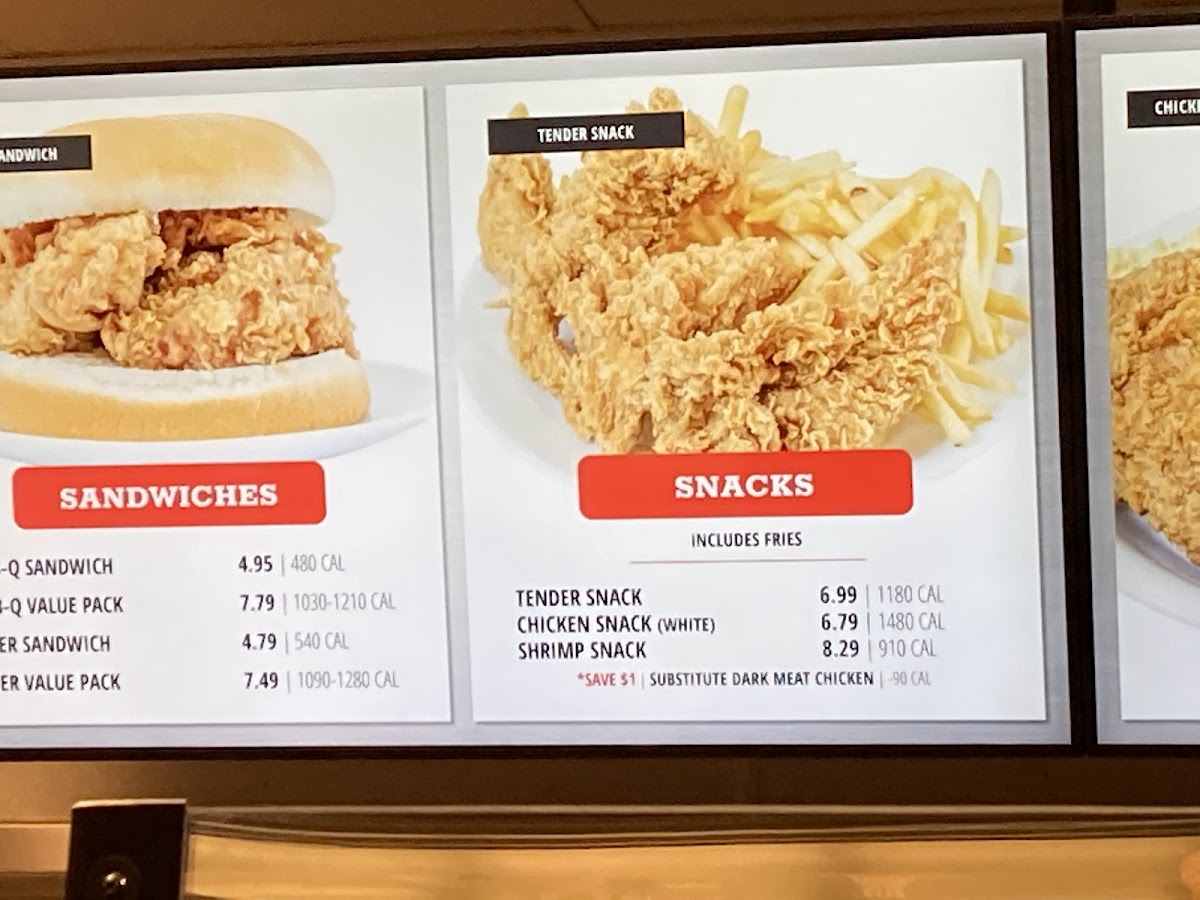 Available upon request. Replace fried chicken with Bar-B-Q Chicken in any Platter, Snack, or Chicken Box